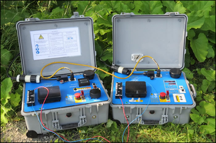Generally, “normal” conductive/resistive subsurface environments are easily surveyed given that at 2400V one is likely to adapt to most conditions. However, in extremely dry, highly resistive environments, where one will face low signal values with a noisy background, this equipment when placed in a combined configuration(the Master-Slave mode) attests its strength as it allows one to identify cryptic anomalies. When a second GDD IP Transmitter, modelTx4 is integrated in the Master-Slave mode this allow sone to utilize 10,000W-4800V-20A (Currently the highest voltage available on the market), thus, providing the ability to adapt to very resistive environments and allow one to send more energy in the ground that will result in a stronger signal, better quality data, and faster survey times.